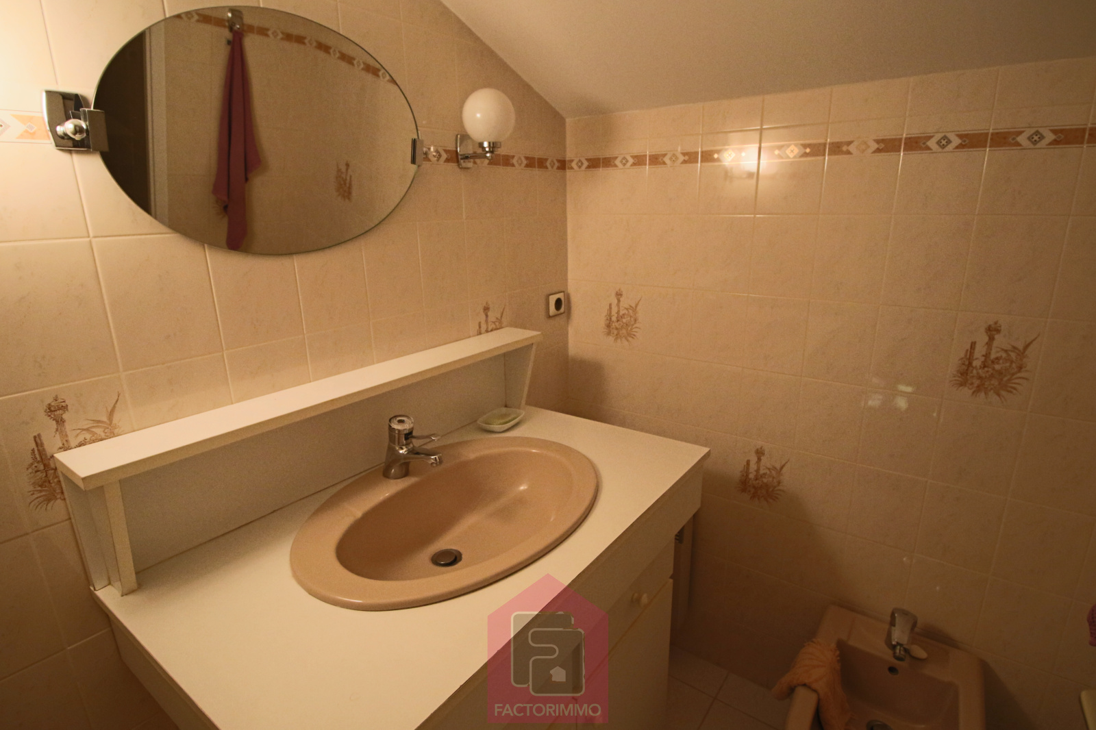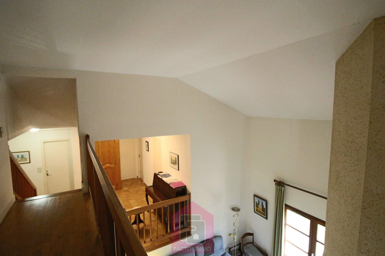 Deuxième demi-niveau : une grande mezzanine accueille une chambre supplémentaire, une salle d’eau et un grenier.