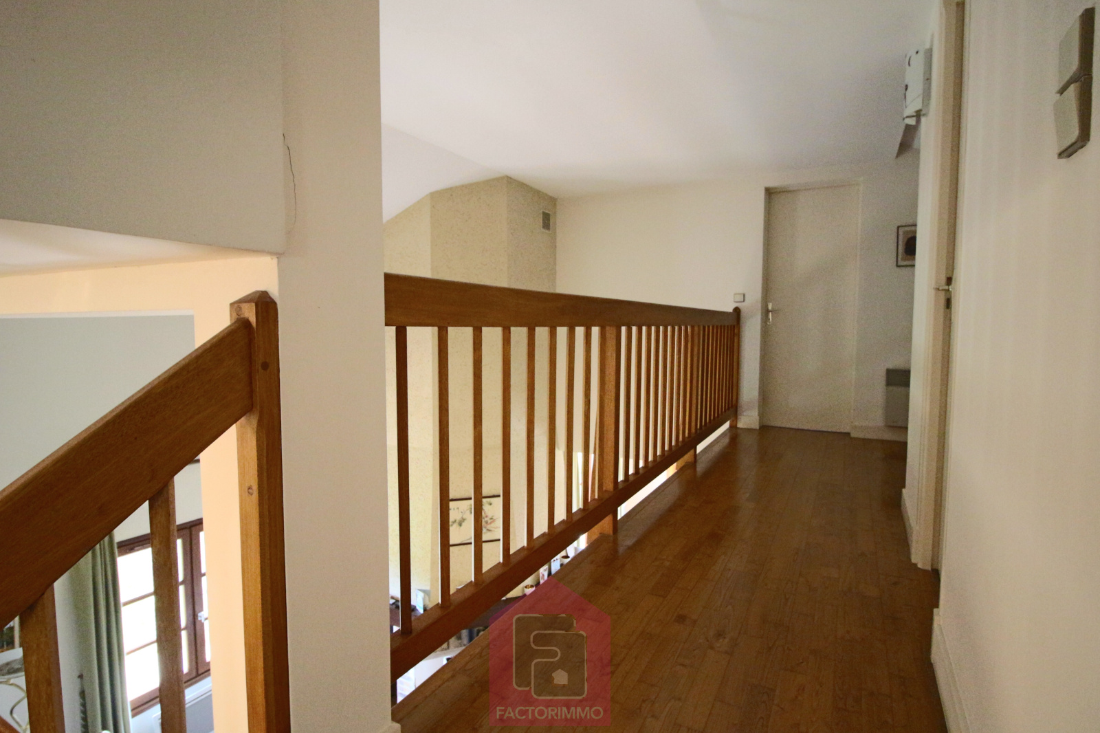 Premier demi-niveau : un vaste palier dessert deux chambres, un bureau, une salle de bains et un WC indépendant.