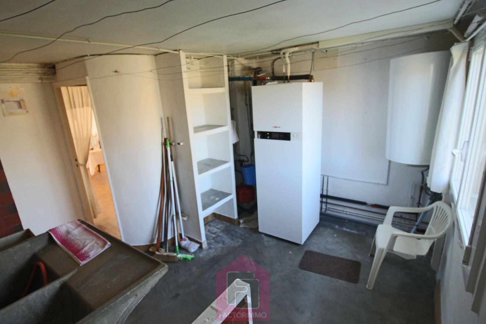 Située à proximité des commerces et raccordée au tout-à-l’égout, elle offre au rez-de-jardin une cuisine avec cheminée et accès terrasse, un bureau ou chambre d’appoint, une salle d’eau avec douche à l’italienne, un WC, ainsi qu’une chaufferie, buanderie et cave.