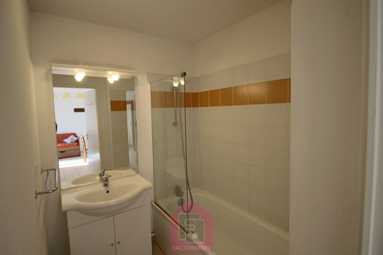 Il comprend un séjour avec cuisine ouverte, deux chambres avec rangements, une salle d’eau avec baignoire et un WC indépendant.