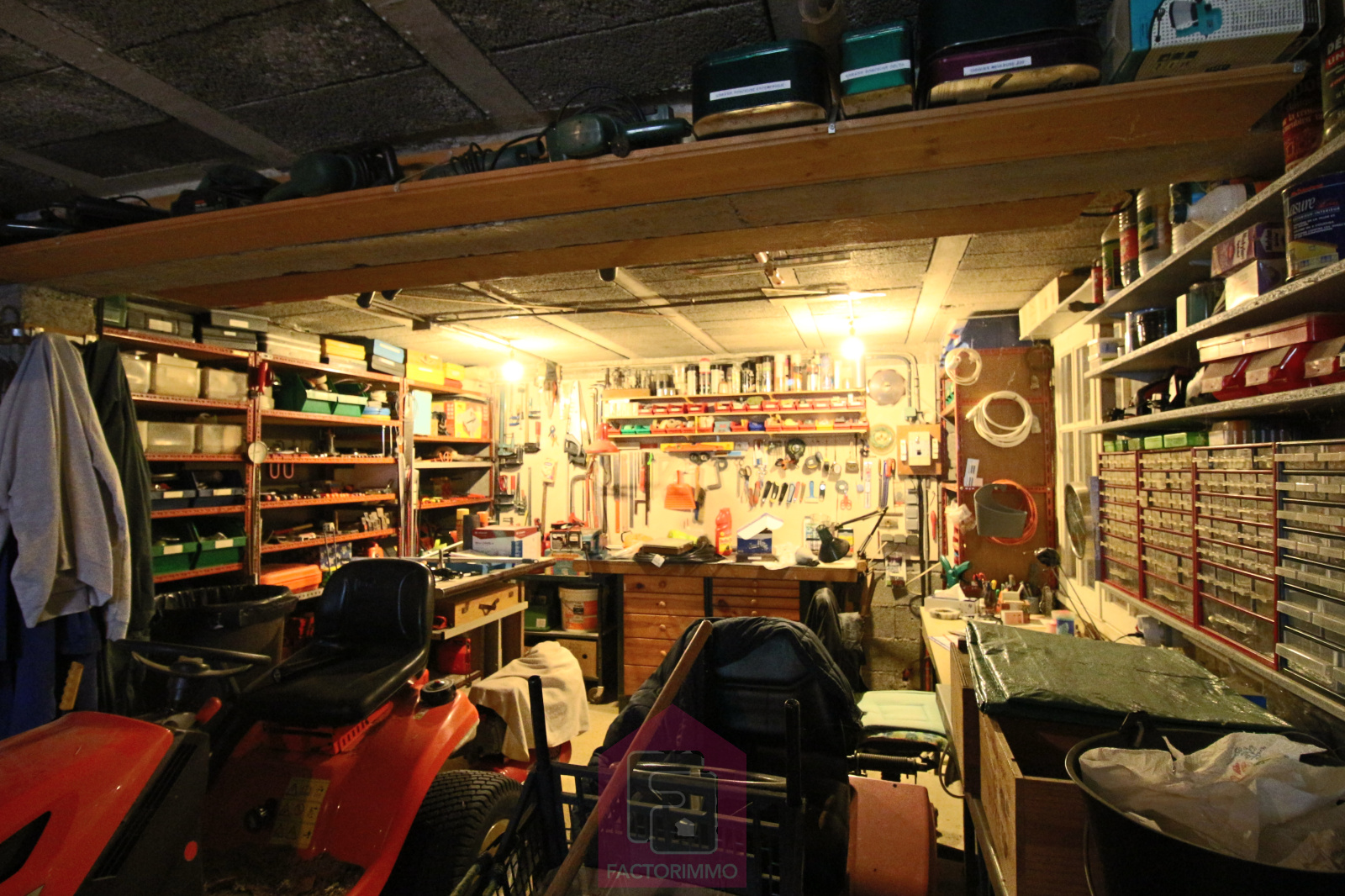 Au rez-de-chaussée : un grand espace de plus de 100 m² comprenant un garage, une cave et des zones de rangement – idéal pour les bricoleurs, le stockage ou des aménagements sur mesure.