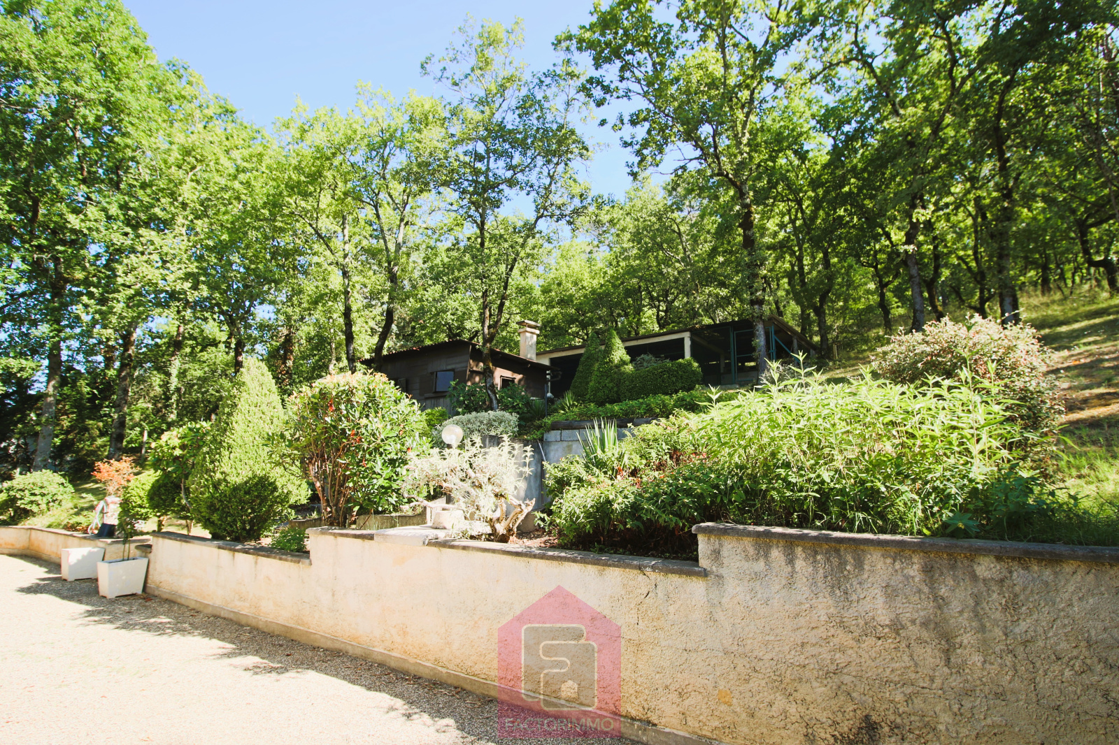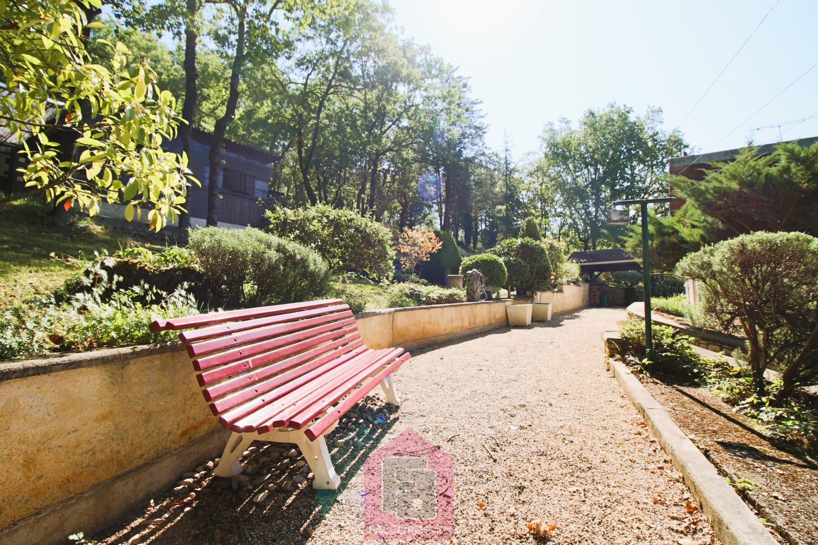 Parc arboré de 17 500 m² avec de nombreux arbres matures.